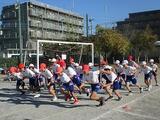 天候に恵まれ、子供たちは校内のコースを走りました。