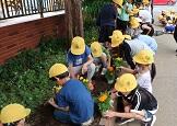 3年生と4年生の児童が、学校の花壇にマリーゴールドを植えました。